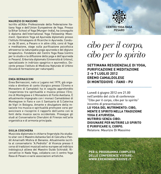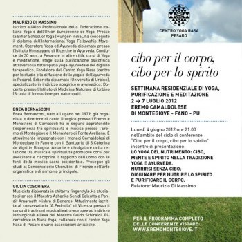 Lezioni e confronto sull’alimentazione naturale, l’alimentazione secondo lo yoga e l’ayurveda, sulla relazione tra cibo, mente e spirito.