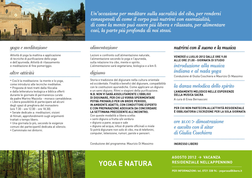Attività di yoga la mattina e applicazione di tecniche di purificazione dello yoga e dell’ayurveda. Attività di rilassamento e meditazione di fine pomeriggio.