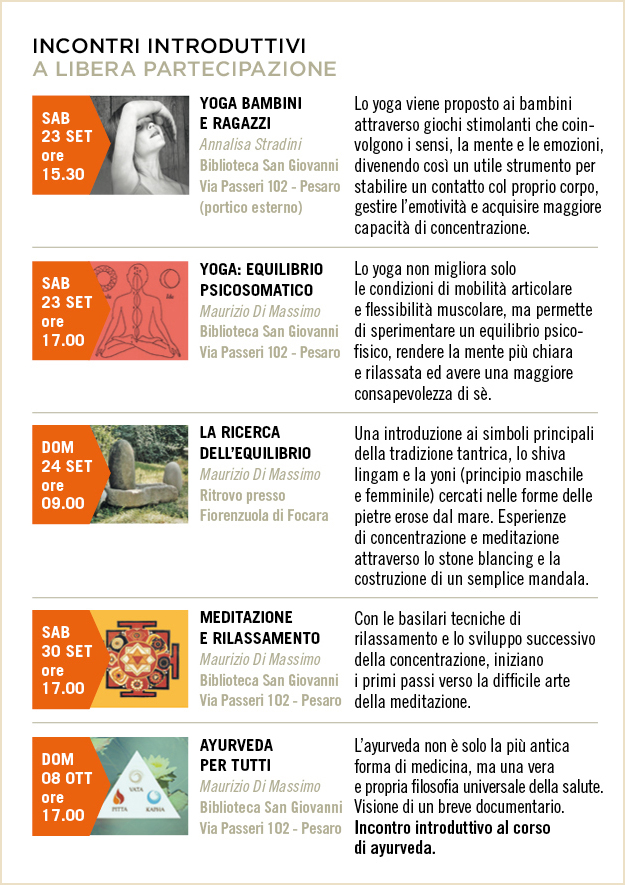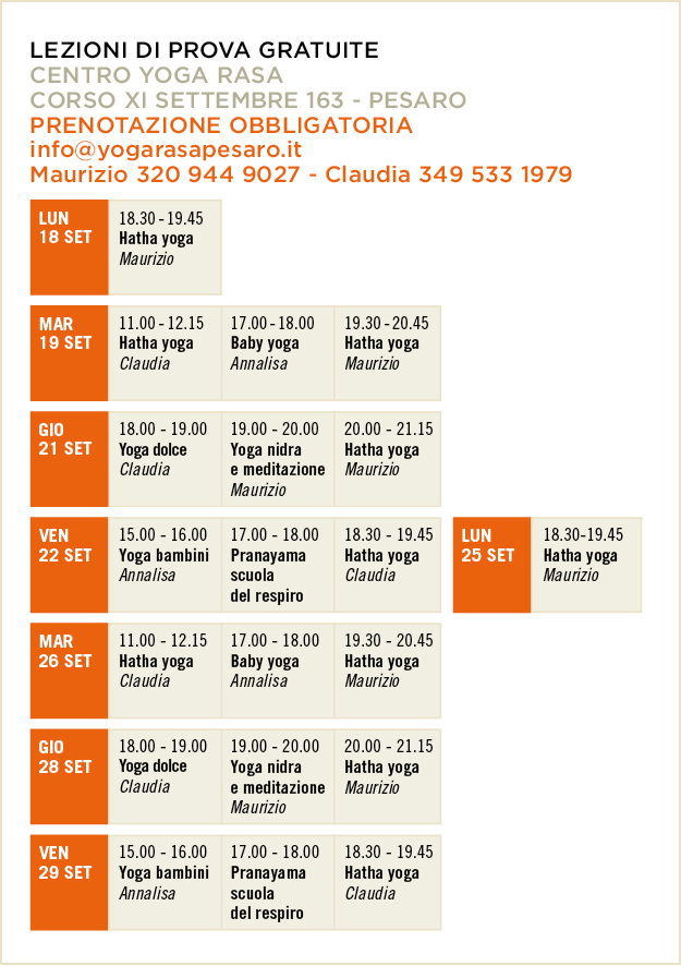 Iscrizione ai corsi entro fine settembre inviando una mail a info@yogarasapesaro.it