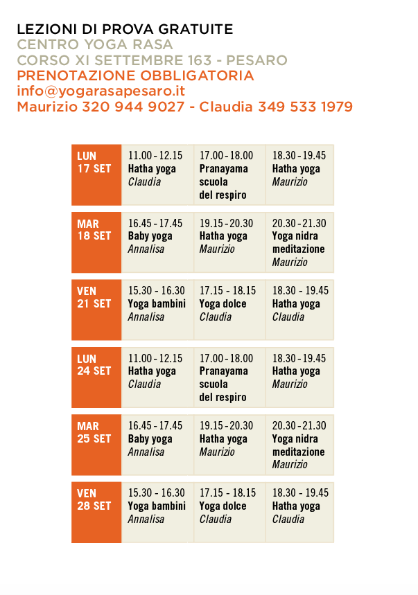 Iscrizione ai corsi entro fine settembre inviando una mail a info@yogarasapesaro.it