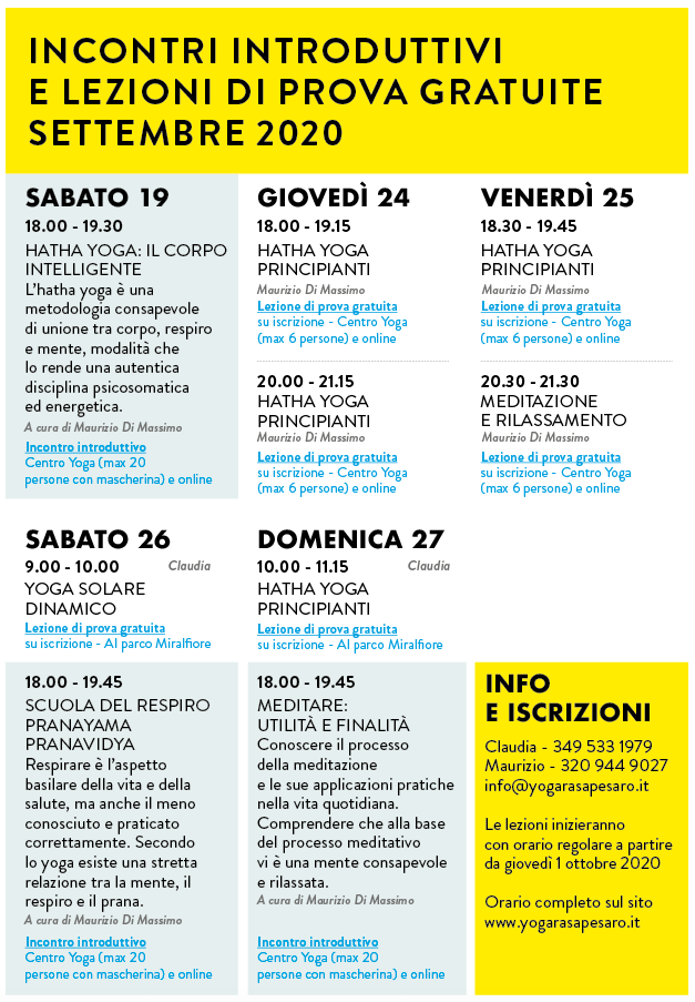 Lezioni gratuite settembre e inizio corsi yoga, meditazione e respirazione