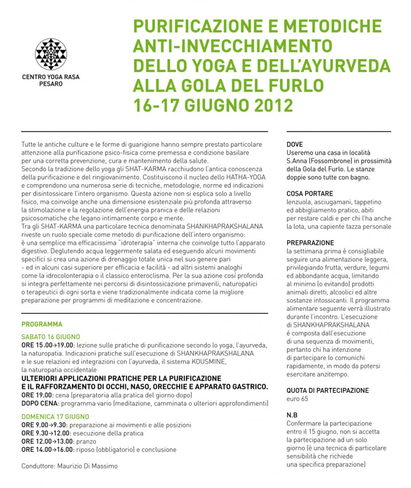 Ore 15.00-19.00: lezione sulle pratiche di purificazione secondo lo yoga, l’ayurveda, la naturopatia.